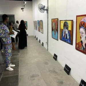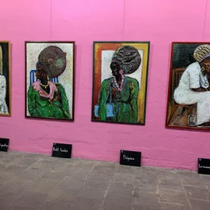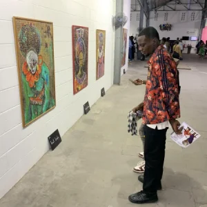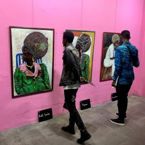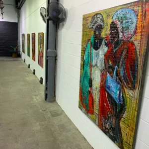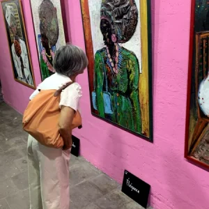 Les toiles de l’artiste peintre Dikisongele célèbrent le courage et la polyvalence des femmes dans la socièté.